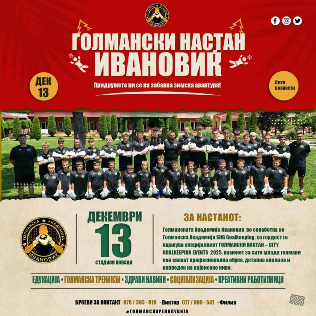 Академија за Голмани Ивановиќ & SHG Goalkeeping – 13.12.2025 година на стадионот во Новаци организираат голмански настан.